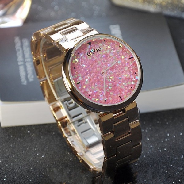 Guou Fashion Kepribadian Tahan Lama Pink Diamond Penuh Diamond Fashion Ladies Watch Rose Gold Strap Shopee Indonesia