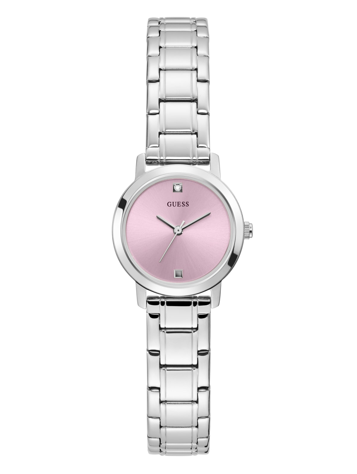 Silver Tone And Pink Diamond Analog Watch Guess