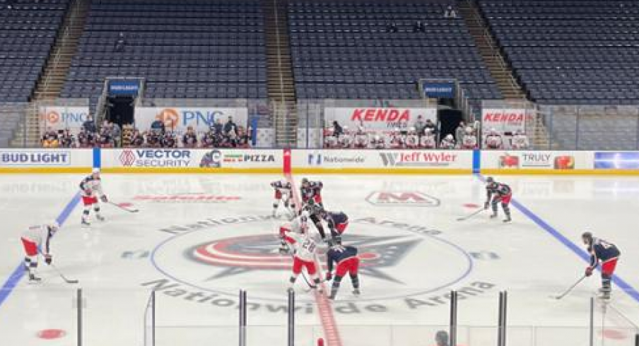 Game On A Split Squad Of Columbus Blue Jackets Score A Combined 15 Goals In Hockey S Return To Nationwide Arena 1st Ohio Battery