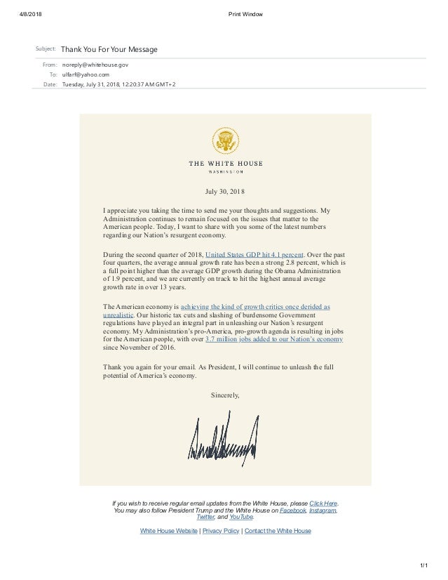Ulfarf Thank You Letter From Donald Trump