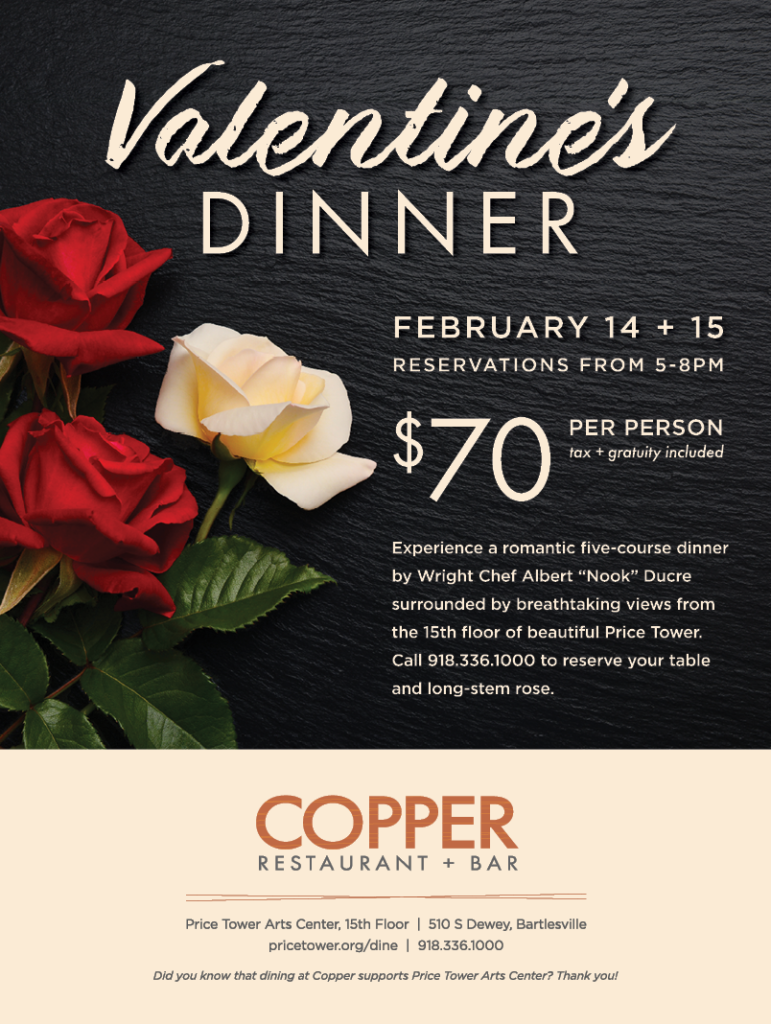 Valentine S Dinner At Copper Restaurant Bar Price Tower Arts Centerprice Tower Arts Center