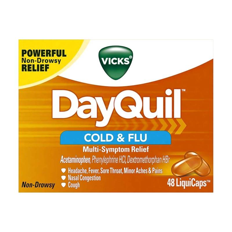Amazon Com Vicks Dayquil Cold And Flu Multi Symptom Relief 48 Liquicaps Non Drowsy Sore Throat Fever And Congestion Relief Packaging May Vary Health Personal Care