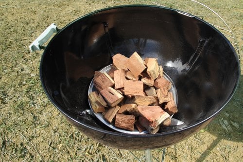 Our Meijer has a great selection of Western Wood carrying about every chunk and chip they make as well as about 12 feet of Weber Accessories. I typically use Western brand Pecan Apple and Cherry because I can get it for about 3 a bag on Post. Light the charcoal using your preferred method.